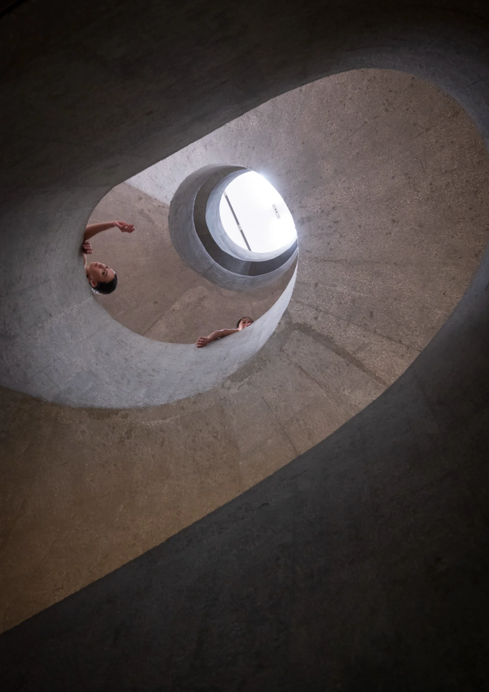 Originally conceived for a spiral staircase, the work unfolds through intertwined bodies that both support and burden one another as they ascend, allowing audiences to encounter it across shifting levels and perspectives. How does a site’s architecture inform your choreographic decisions, and what changes when the work is re-situated in a new spatial context? How do these spatial shifts reshape the narrative, emotional intensity, and the dynamic between performer and viewer?