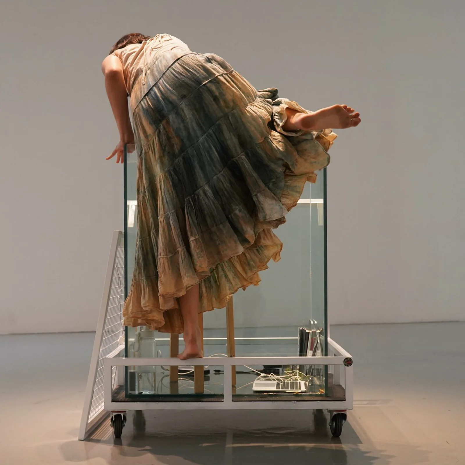 Through my previous experience of performing this work from Tuesday to Friday, eight hours a day, for a month, I realized that what was more unsettling than the body’s ability to adapt was the human capacity for perception to adjust. At a certain point, I found that I could accept, and even believe, that this restricted, uncomfortable, or almost self-harming environment was normal for me. (I even began to refer to this glass box as ‘my room’, after stepping out of it each day.) In this sense, duration transforms not only my movement, but also my beliefs about what is acceptable within conditions of living and working. For the audience, I think a similar shift occurs. At first, many viewers might experience a sense of discomfort when seeing a human body in such a confined environment. But as they continue to observe over time, the situation can begin to feel increasingly ordinary. Even though they are outside the box, I find it fascinating how their minds will eventually try to make sense of and adapt to this bizarre reality. I have even encountered an audience that described the space as looking comfortable.